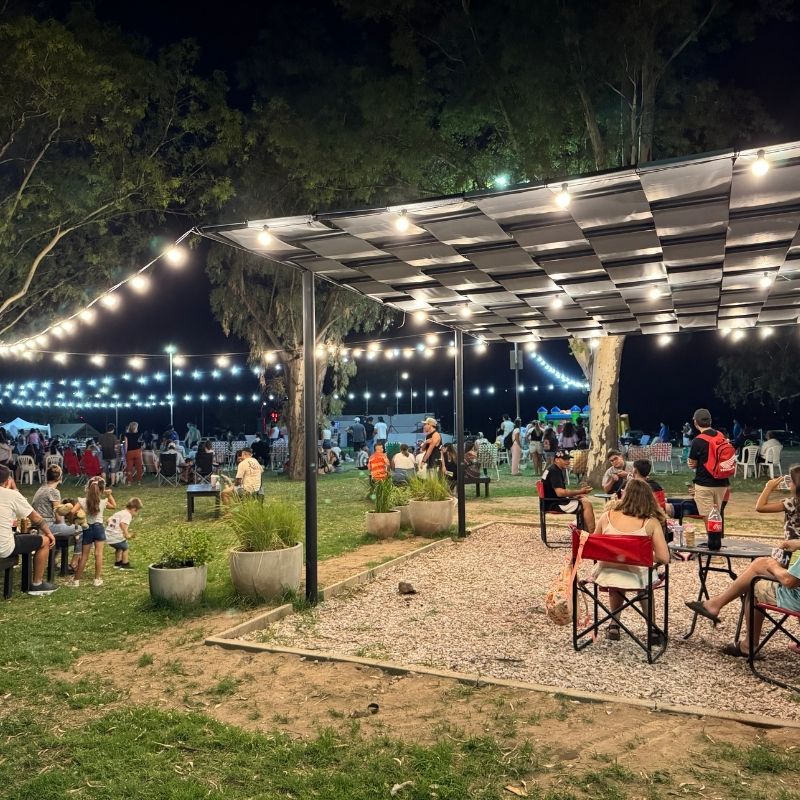 Área de Camping y Parrillas: Un sector forestado y acondicionado con fogones, mesas y servicios esenciales, ideal para el turismo de paso por las rutas 35 y 188 y para las reuniones familiares del fin de semana.